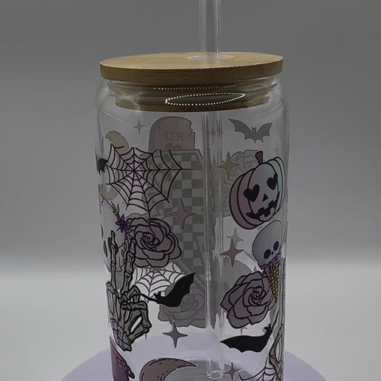 Checkered Lightning Bolt Halloween 16oz Glass Cup