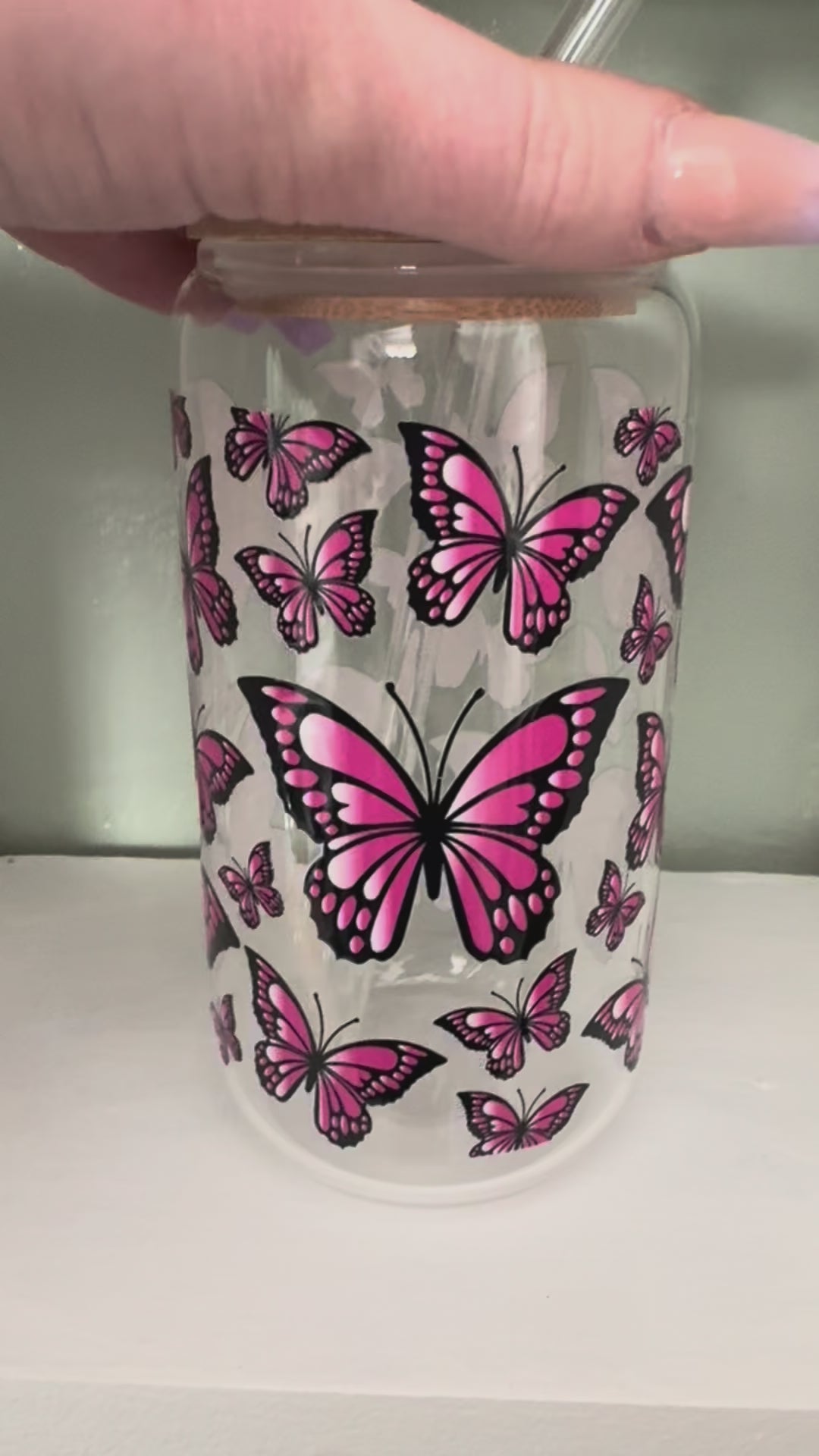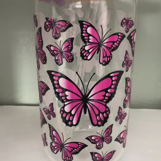 Hot Pink & Black Butterfly 16oz Glass Cup
