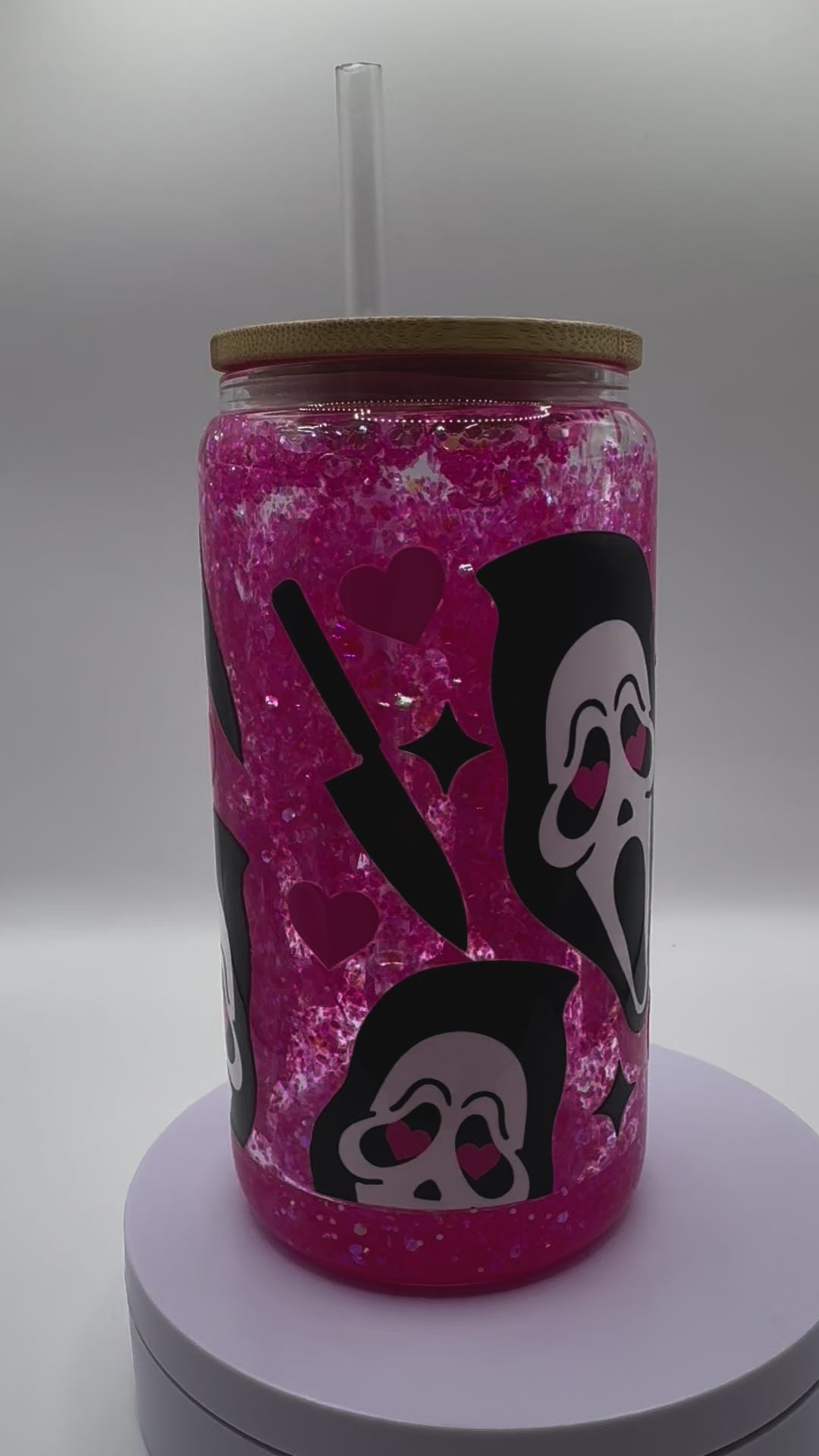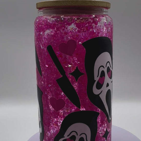 Pink Scream Halloween 16oz Glass Snow Globe Cup