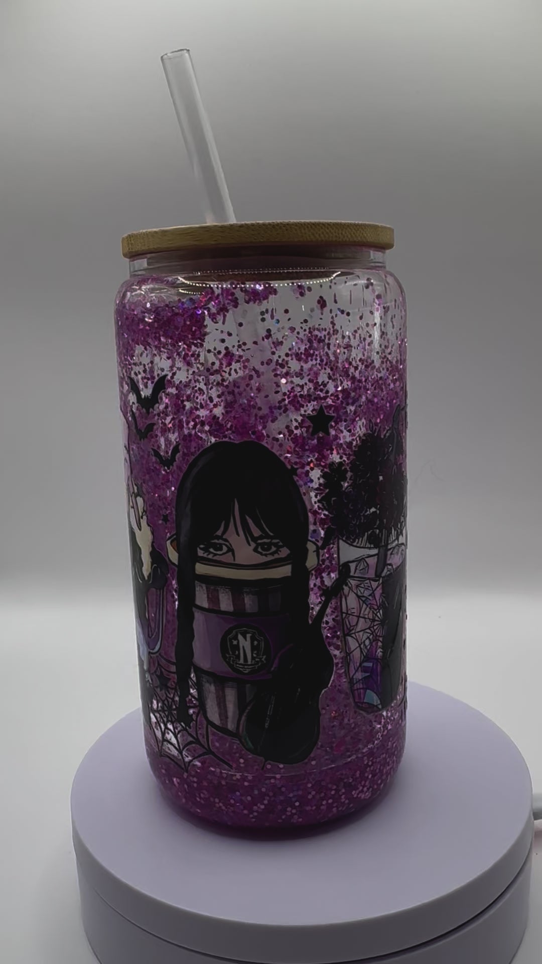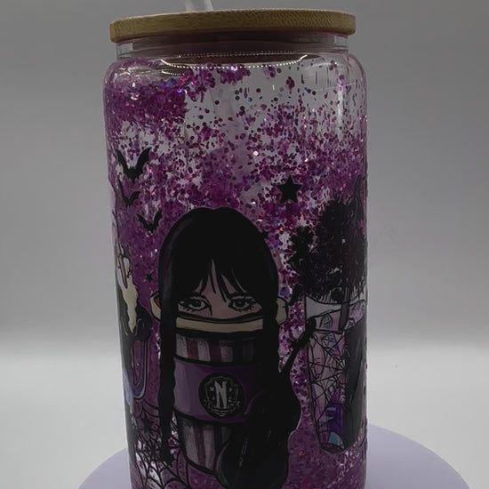 Purple Wednesday Halloween 16oz Glass Snow Globe Cup