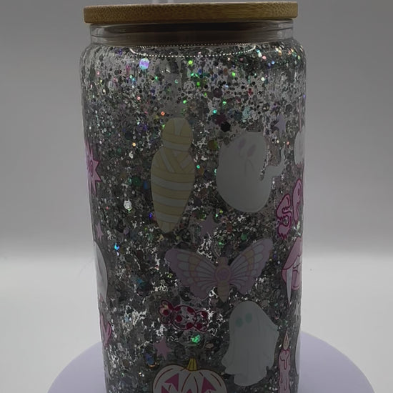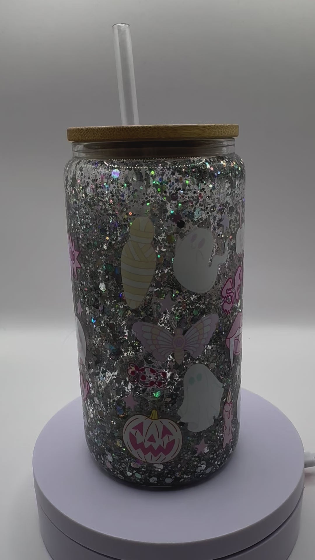 Silver Spooky Halloween 16oz Glass Snow Globe Cup