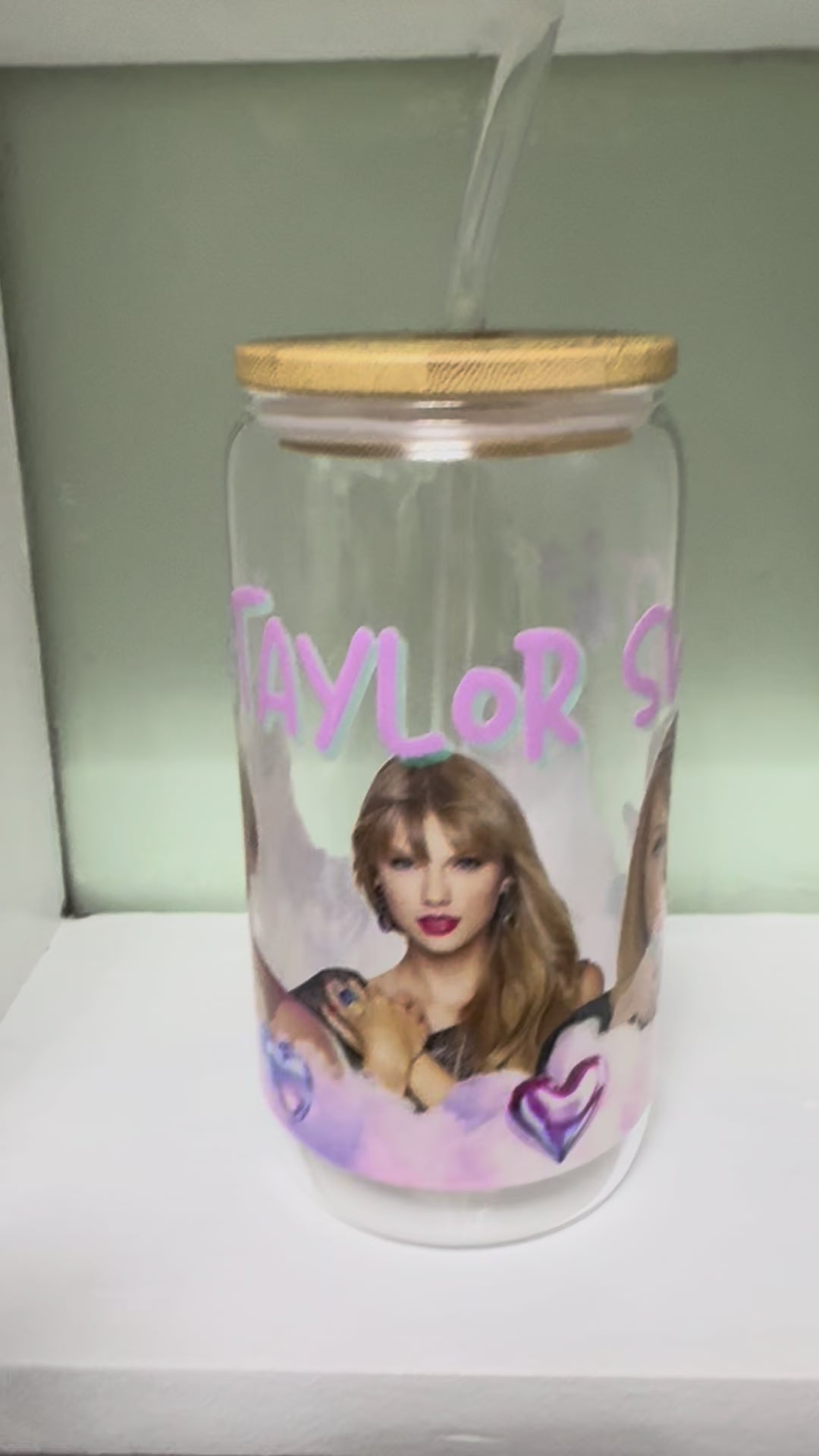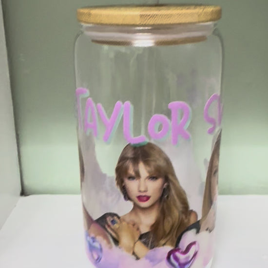 Taylor Swift with Hearts 16oz Glass Cup