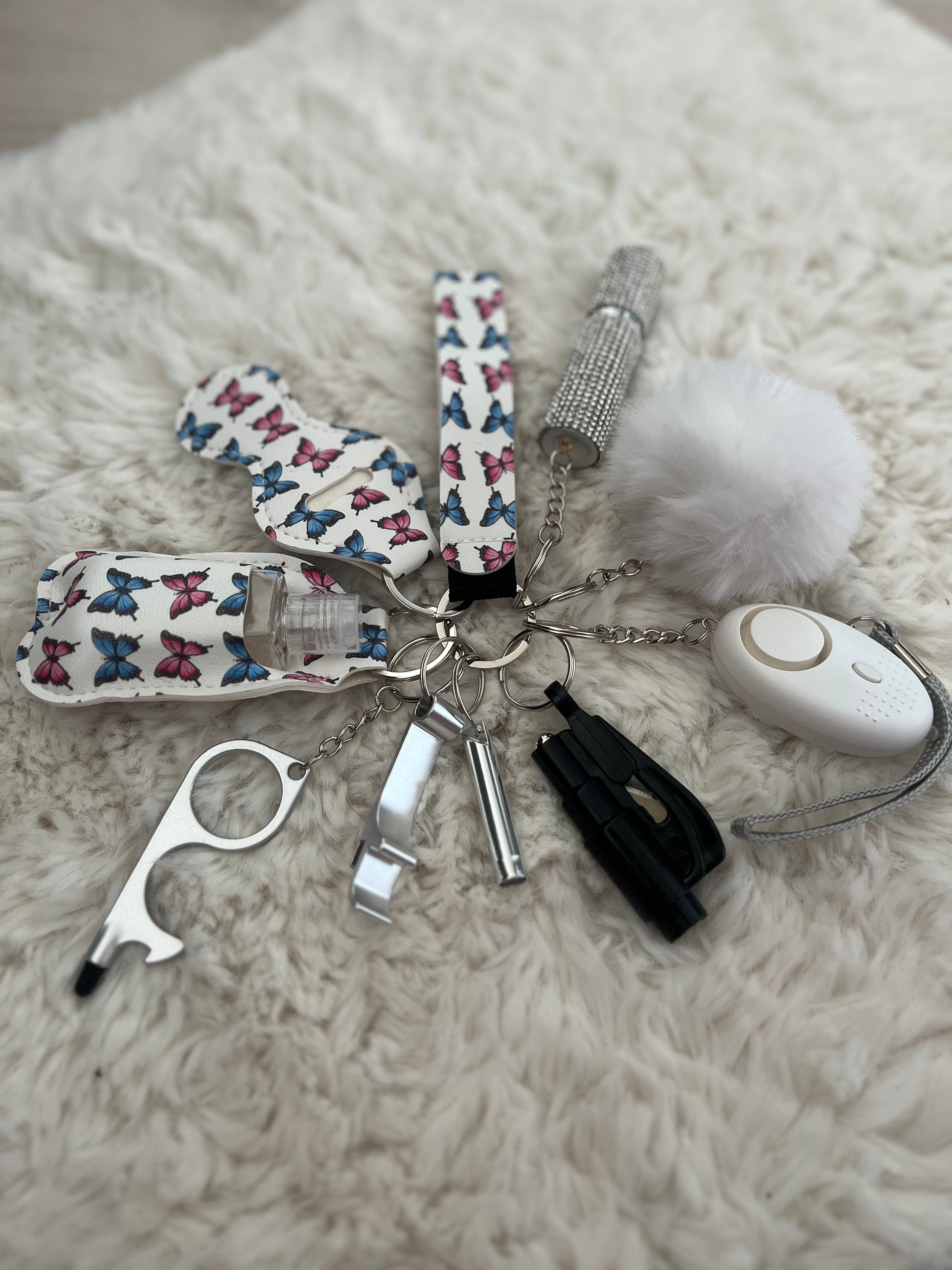 White Butterfly Safety Keychain/10 in 1 Keychain Set With Personal Alarm (Battery Included)